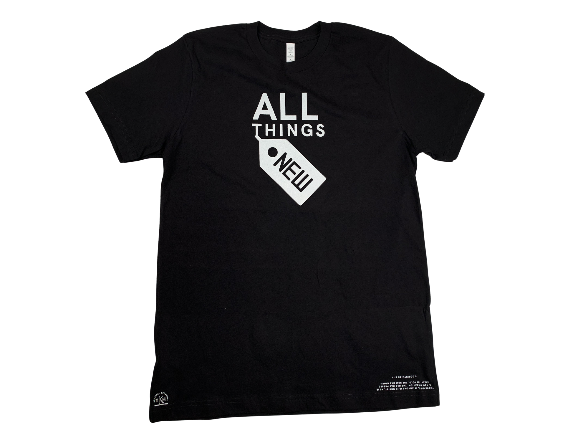 Step into your new season with a reminder of God’s promise to transform, restore, and renew. The ALL THINGS NEW tee features a bold tag-style graphic declaring the truth of 2 Corinthians 5:17 — that in Christ, you are made brand new.